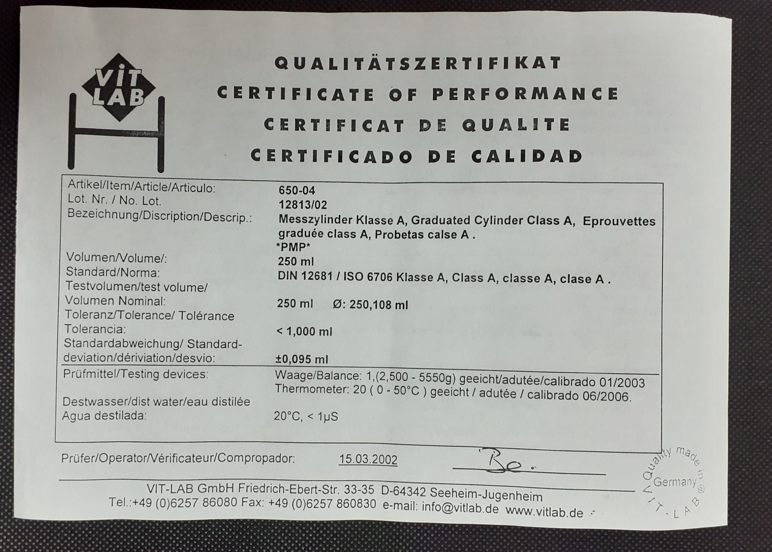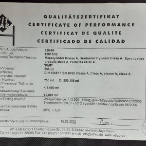 Class A: DIN 12681_ ISO 6706 with lot no. certificate.